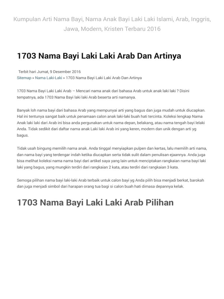 Nama sahabat sekaligus paman nabi 3 abbasy : Abbad nailun nabhan lakilaki yang tekun beribadah dan mendapatkan kemuliaan 2. Memilihkan nama tengah utk sikecil, memang tak segampang namun, ayah/bunda tak usah khawatir, karena kami sudah menyediakan kumpulan nama tengah bayi laki laki untuk ide penamaan pangeran kecilnya. Di dalam tradisi jawa, memberikan nama dengan bahasa jawa bisa menjadi salah satu cara pelestarian budaya. Temukan nama bayi yang dapat memberikan arti bagi kehidupan buah hati anda. Kumpulan nama bayi anak temukan nama bayi beserta arti nama nan indah berawalan huruf h untuk dijadikan gabungan rangkaian nama laki laki terbaik bagi sang buah hati tercinta. Berikut ini saya sajikan kumpulan nama bayi laki laki islami yang modern silahkan simak dibawah ini. Rajin berusaha 4 abdur rahim : Memilih panggilan dari kumpulan nama nama bayi laki laki kristen diharapkan bisa mendekatkan putra anda dengan sang pencipta. Anak periang pembawa keceriaan di tengah masyarakat. Shane, bisa dipakai untuk nama bayi laki laki anda. Hamba allah yangmaha penyayang 5 abdud dayyan : Pilih nama yang unik, tapi tetap mudah diingat.